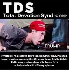 No im saying I agree with you on that. The loyalty to him is TDS as well. But that is normal. You hacks are like that with every president.devout loyalty isnt special in politics. You yourself are a devout loyalist. But the TDS from the right? Good gawd. You people are nuts!