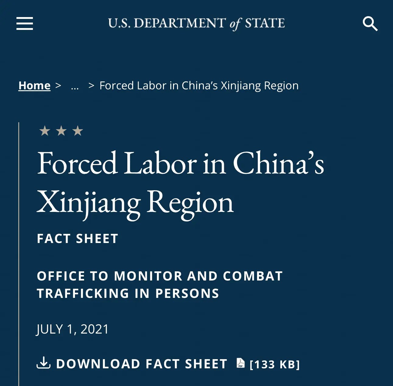 Over the last four years, the People’s Republic of China (PRC) has carried out a mass detention and political indoctrination campaign against Uyghurs, who are predominantly Muslim, and members of other ethnic and religious minority groups in the Xinjiang Uyghur Autonomous Region (Xinjiang), a large region in western China. The courageous voices of survivors, their family members abroad, researchers, and international advocacy groups have thoroughly documented the PRC’s discriminatory use of surveillance technologies and trumped-up administrative and criminal charges to abduct and detain more than one million Muslims, including Uyghurs, ethnic Hui, ethnic Kazakhs, ethnic Kyrgyz, ethnic Tajiks, and ethnic Uzbeks, in as many as 1,200 state-run internment camps throughout Xinjiang. Detention in these camps is intended to erase ethnic and religious identities under the pretext of “vocational training.” Forced labor is a central tactic used for this repression.