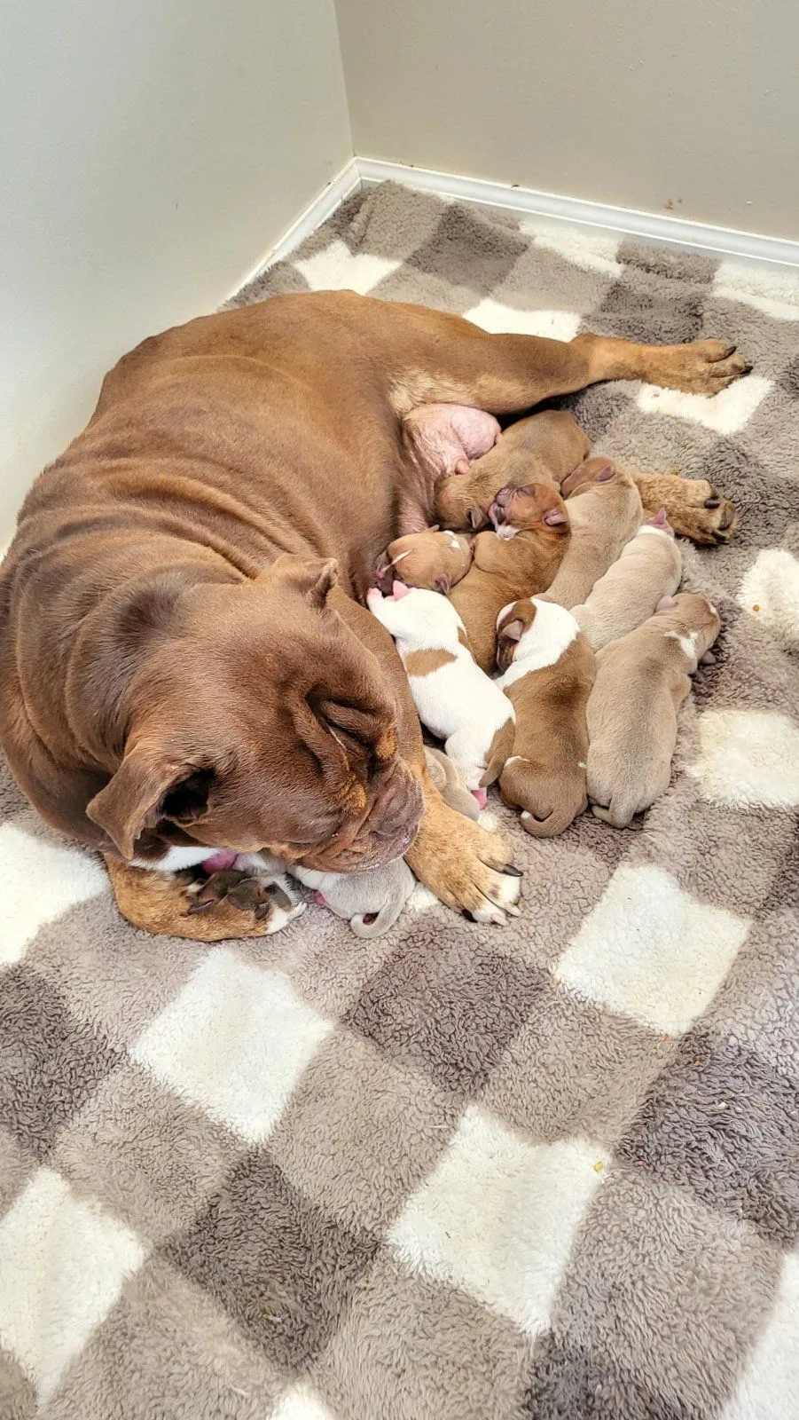 She started birthing at 5 pm and ended at 130 amEnglish Bulldogs usually have small litters that are born by C Section