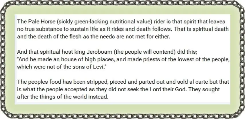 Not only that but the children are not getting the proper nutrition and I would venture to guess that many have intestinal damage. I know some people get tired of hearing it but this is how it works. In the flesh things manifest that are also happening in the spirit. This note I made explains in short a portion of what we are seeing happening all around both spiritually and carnally. Pale means sickly green, lacking in sustenance/nutrition. The food/sustenance is strip of its nutritional value whether spiritually or for the flesh and death follows (Cargil strips and parts out even the animal feed that used to be nutritious until they took over most of the mills). With all of the pollutants in the water and the food it is also causing internal damage and that goes the same for things added to spiritual food that are not really food at all but trash. Even much of the music doesn't even lift the spirit now and the media crap being pushed throughout is worthless too as much of it is just agenda pushing for the money marketeers.Kid being prescribed what the classical liberals fail to admit because dumbasses can't figure out how to connect the dots, but you can bet these kids / the kid were on a cocktail of meds which causes SUICIDAL tendencies/ thoughts.