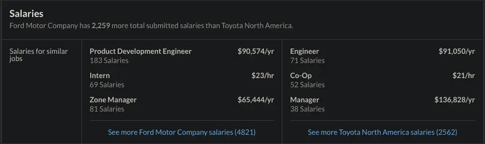 They are not significantly paid less than people at Ford. If they were, no one would work there.