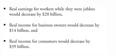 Real earnings for workers while they were jobless would decrease by $20 billion,