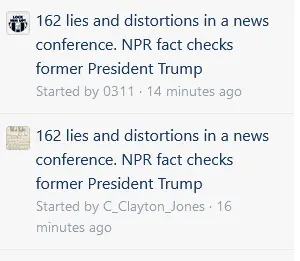 But there was so much more. A team of NPR reporters and editors reviewed the transcript of his news conference and found at least 162 misstatements, exaggerations and outright lies in 64 minutes. That’s more than two a minute. It’s a stunning number for anyone – and even more problematic for a person running to lead the free world.”