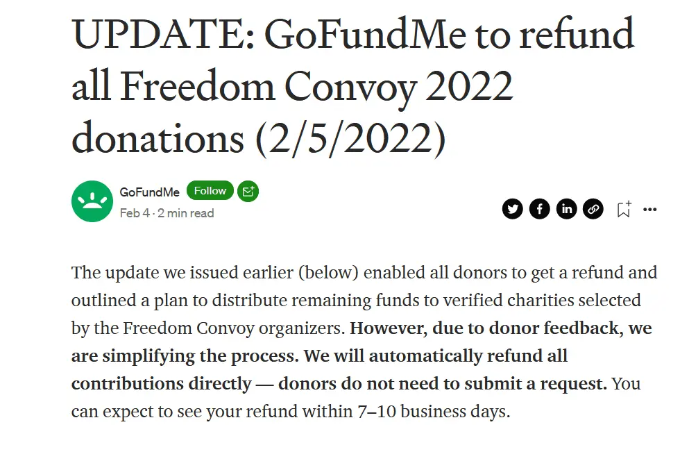 “We now have evidence from law enforcement that the previously peaceful demonstration has become an occupation, with police reports of violence and other unlawful activity,” GoFundMe wrote in the company’s Friday announcement that it would steal millions from the truckers participating in the “Freedom Convoy” to protest Canada’s Covid mandates, diverting the money “to credible and established charities chosen by the Freedom Convoy 2022 organizers and verified by GoFundMe.” After backlash, the platform announced it would instead refund the money to donors.