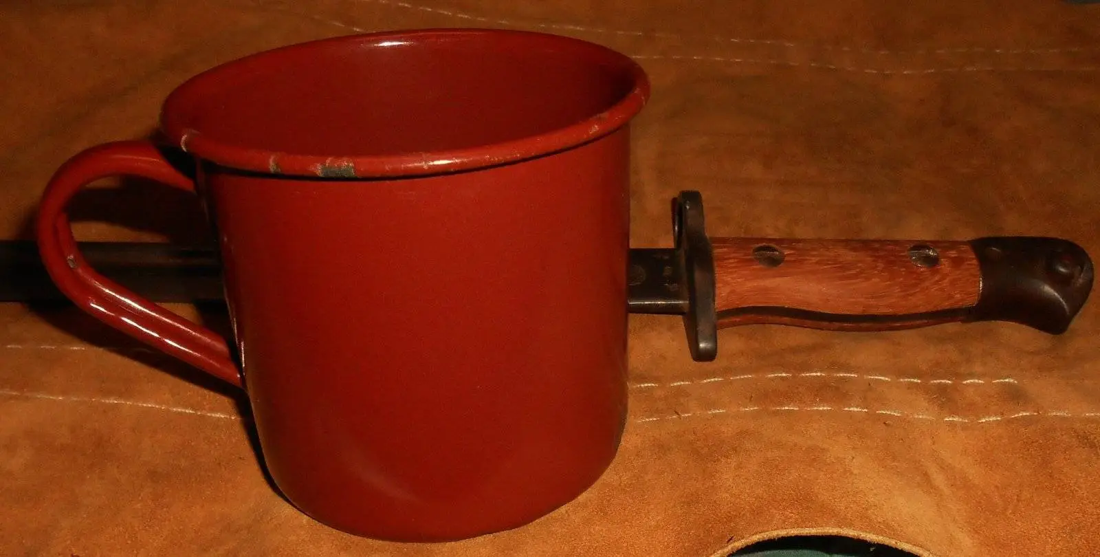 Officially adopted in 1917 the 16 oz enameled tin or steel Tea Mugs issued to all military units throughout WWII and thereafter.