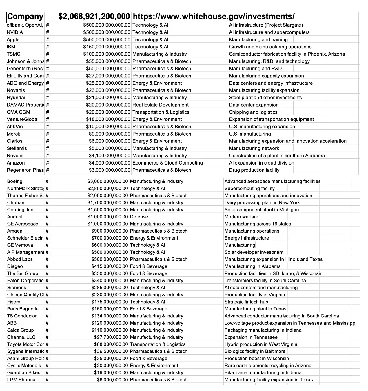 Track the flood of private and foreign investment pouring into U.S. manufacturing, tech, and infrastructure, driving jobs, innovation, and growth nationwide.