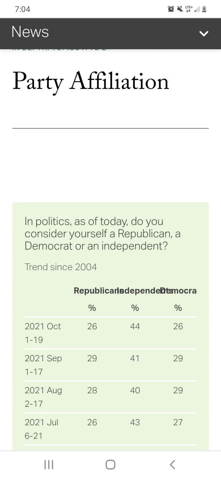 I think you have about 40 percent maybe a little more who identify as Republican about the same as Democrat the rest as independent. I also think more and more are identifying as independent over Republican or Democrat and that the partisans on both sides think more people identify with their party than actually do.Really? How many people do you think are in the GOP? Half?