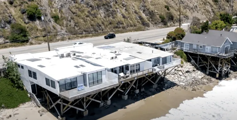 Once a symbol of luxury along the Pacific Coast Highway, the property is a charred skeleton, with only concrete pillars remaining.