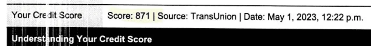 My credit score was 871