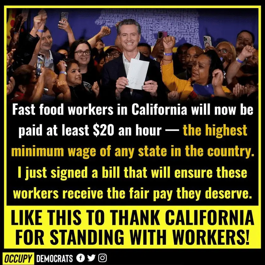 Great news! Congratulations to California burger flippers! Thank you Governor Newsom!