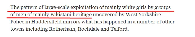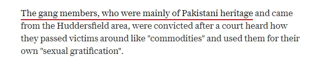 This is below from The Telegraph of London, which illustrates that the majority probably 98% of this latest Muslim Grooming Gang Raping Gang would be Muslim as it specifically says like ALL the other Muslim Grooming Gang Raping Gangs they have in England the perpetrators are of Pakistani heritage, Pakistan is a majority Muslim nation, the Pakistani's are majority Muslims: