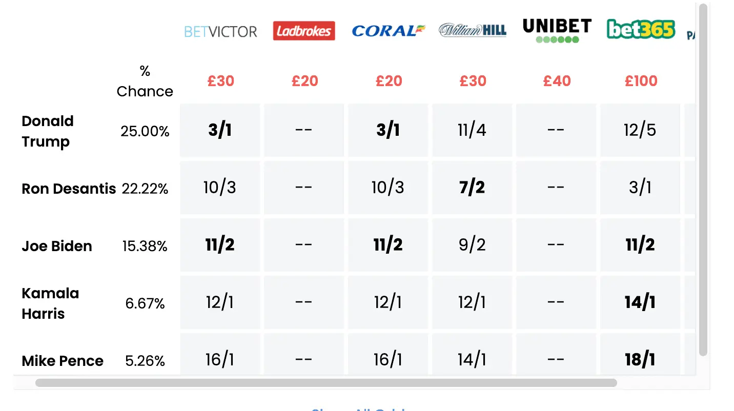 View attachment 6663762024 Presidential Election Odds & Betting | Odds Shark