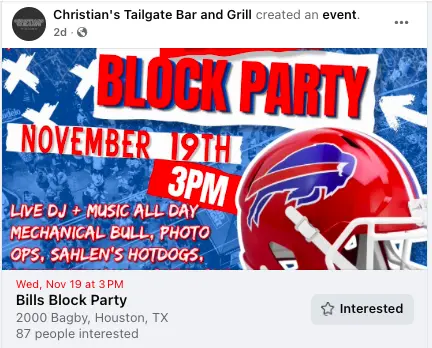 Not sure what the tie-in is but if you’re in Houston on 11/19...apparently one of the better burger joints on the planet is having a Bills viewing party.