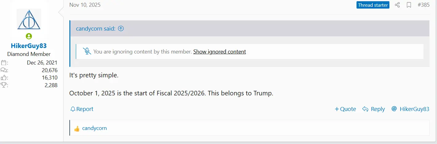 Uh....if you read my other thread, you'll see the fiscal 2026 started tracking October 2025. So, I think you are batting 1000%. Also...post 385 in this thread......Doesn't know what the words "fiscal year" means
