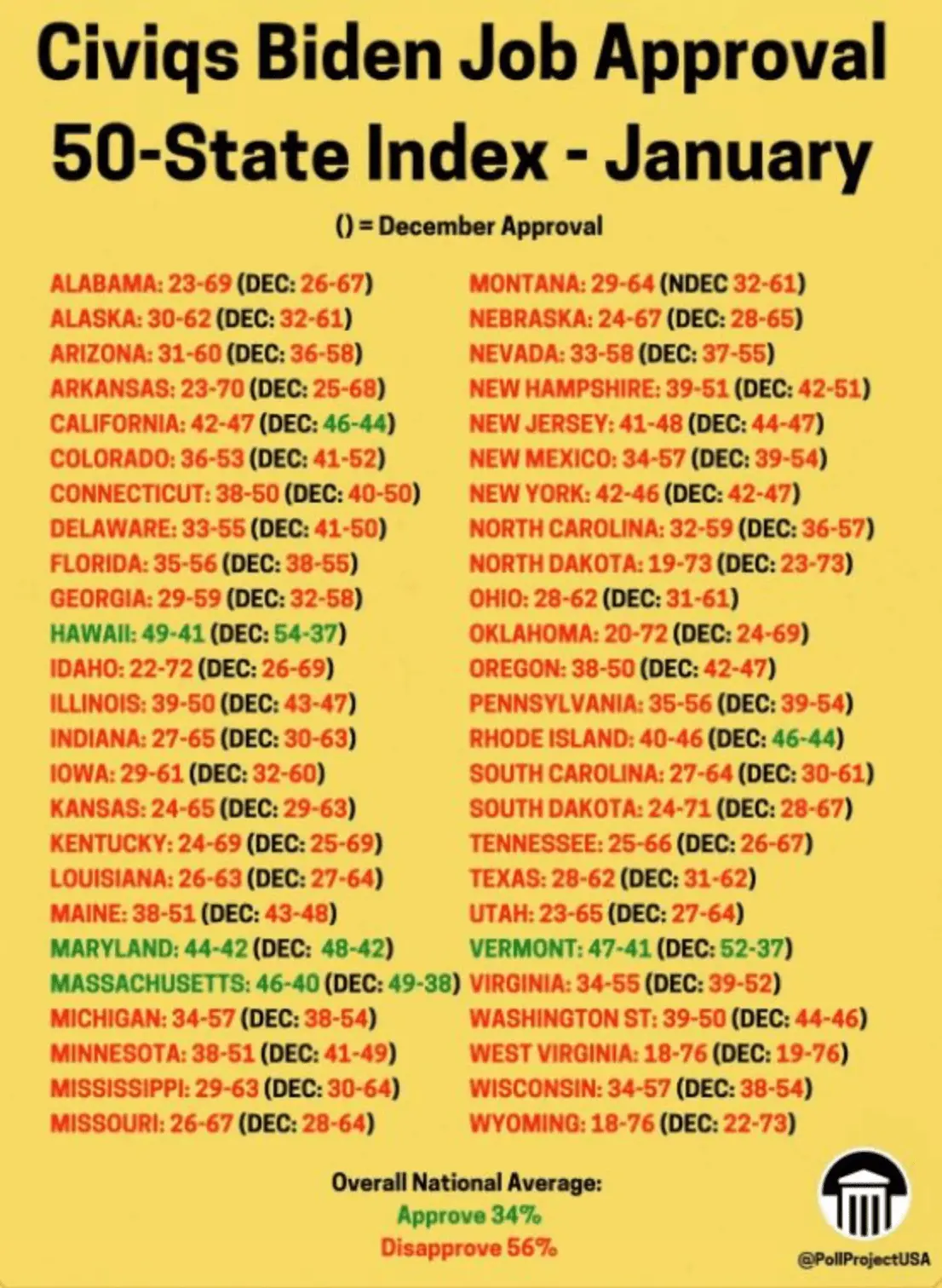 OK... folks... 3 states out of 50 have Biden's job approval higher.
