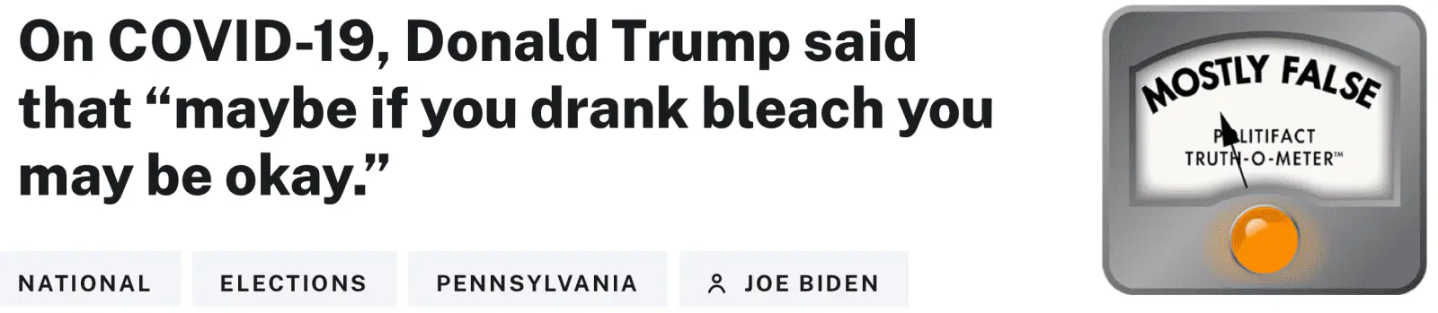 Finally here is what politifact.org declared about Biden's lie that Trump suggested drinking bleach..