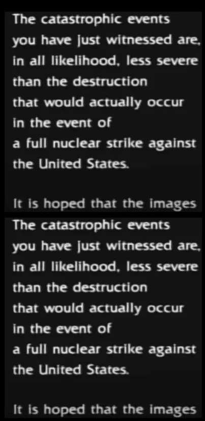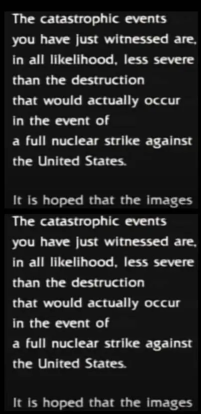 I wished I could have found a clearer version. But the ending credits say that it would be much worse. I spent 9 years in SAC and I believe it. And I also believe that mutual destruction MAD is the only reason we have not been nuked off the face of the earth.
