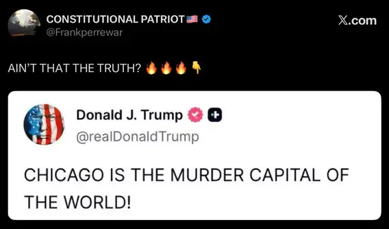 "Chicago is the worst most dangerous city in the World, by far. Pritzker needs help badly, he just doesn't know it yet. I will solve the crime problem fast, just like I did in DC. Chicago will be safe again, and soon," Trump wrote on his social media platform on Tuesday, pointing out gun violence in Chicago over the holiday weekend and repeating an earlier suggestion that federal intervention is needed to combat crime.