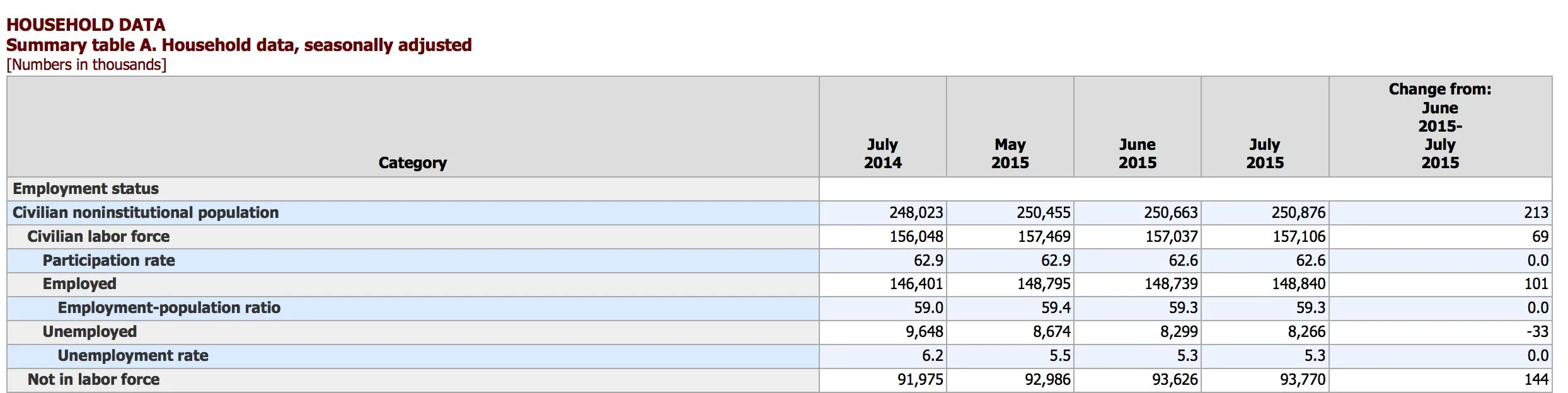 Employment Situation Summary Table A. Household data seasonally adjusted