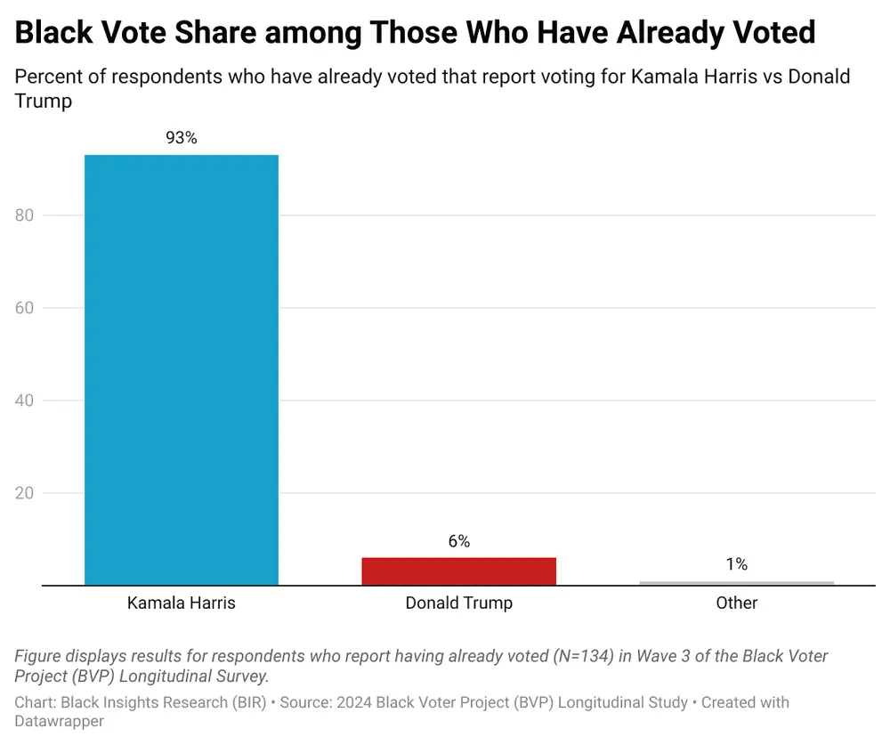 Here's another holdover. I think it's been noticeable that Democrats' grasp with Black voters, specifically Black men, has been slipping. They don't like Kamala; they like her less than they liked Joe. And, I keep saying this but it's true: Hispanic voters, especially Hispanic men, do not like the idea of a woman being in charge. They're traditional in their mindset. Kamala's non-traditional in more ways than one. I don't think she's endeared herself to either group. This might be why she struggles winning over the swing state voters...because the typical Democrats in those states are lukewarm on her.