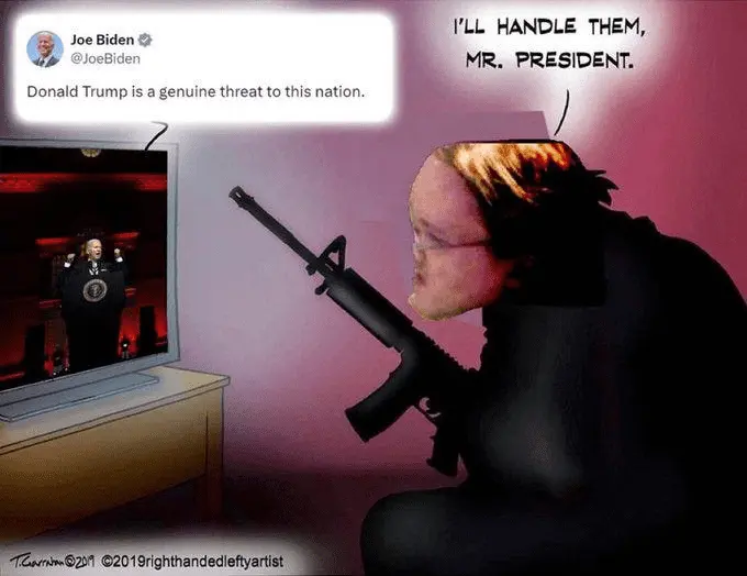 No, it doesn't.Biden: Trump is evil, a threat to democracy, and we need to put him in a bulls-eye.