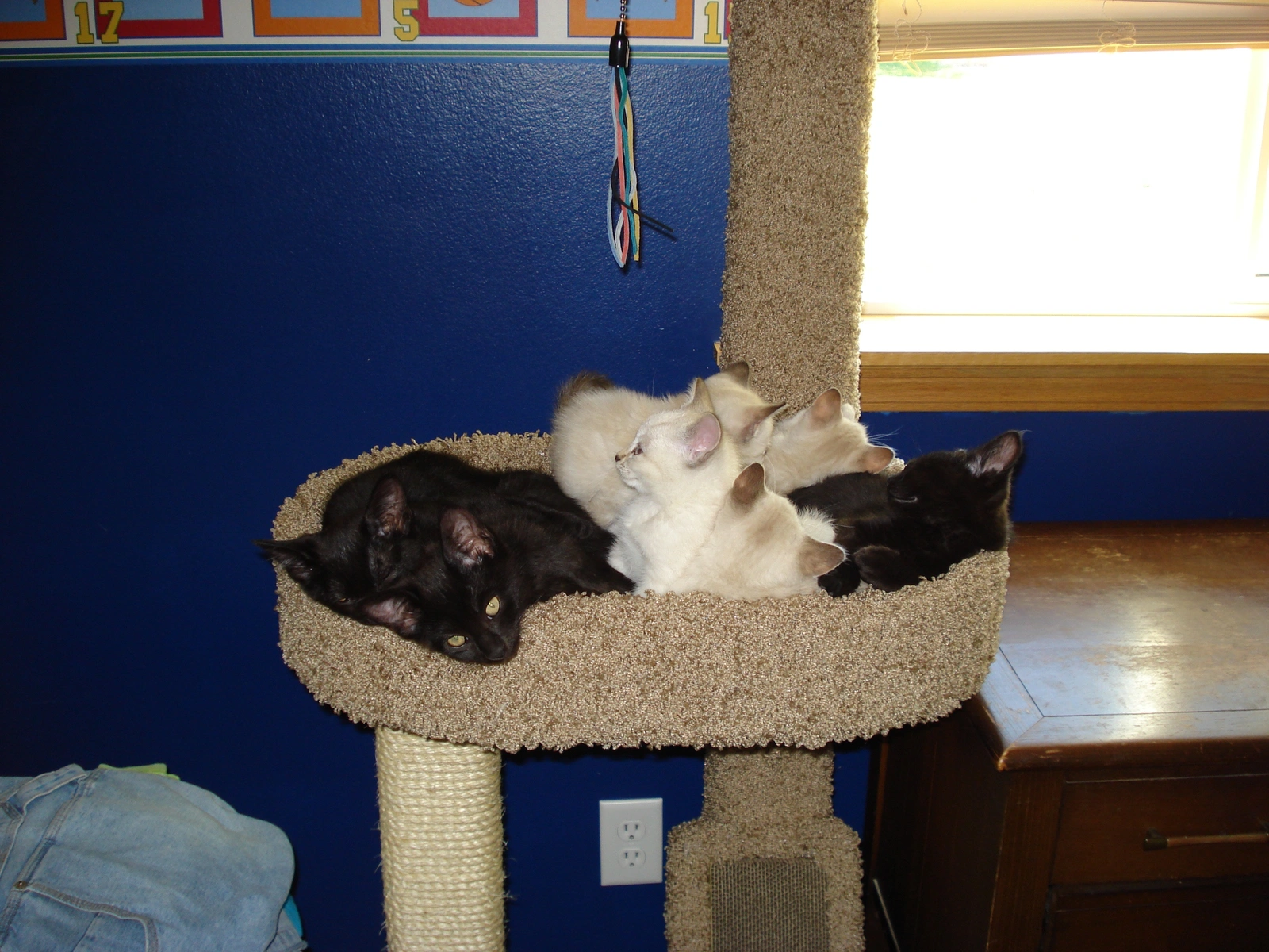Off the top of my head I count 10 cats in total, 11 if I factor in my neighbors white and orange long hair roxie liked my place better than his