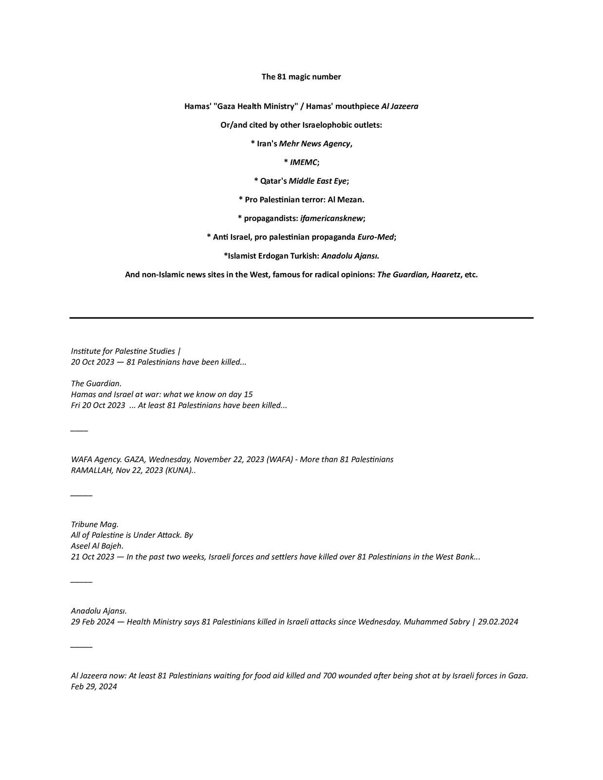 The media can’t allow itself to spot even the more obvious ‘tells’ of fraud. Including Israel somehow repeatedly killing precisely 81 people on different dates and operations.
