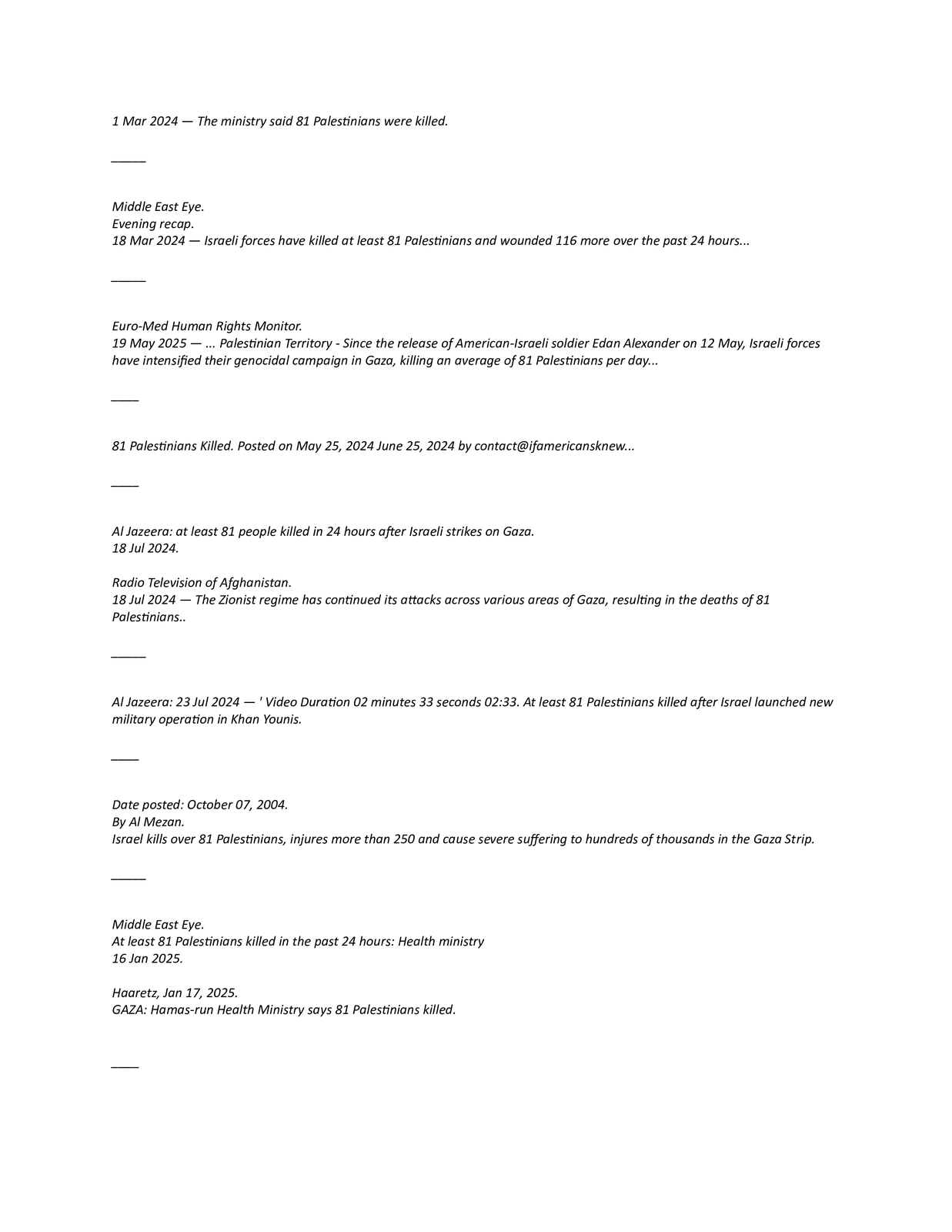 CNN passed on Hamas claims that 81 people had been killed in Gaza beginning in 2014 and, since Oct 7, on Oct 20, 2023, May 26, 2024 and Jan 16, 2025 without doing a double take.