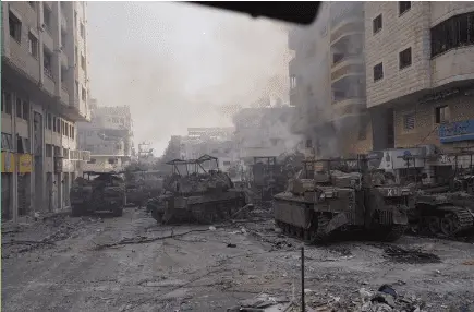 - Documented evidence by the Resistance of countless Israeli tanks being blown up or damaged in direct hits, especially using Yassin 105 anti-artillery missiles, along with other improvised RPGs.