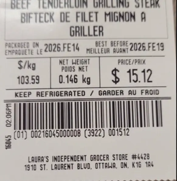 CA$46.95/lb is only US$34.30/lb. Still seems a little high.Here it is, $103.59 a kilo. This is $46.95 per pound.