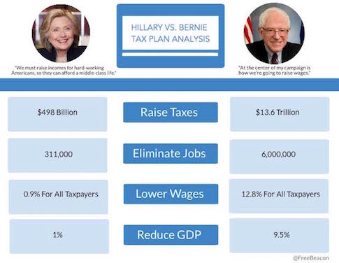Both presidential candidates Hillary Clinton and Sen. Bernie Sanders (I., Vt.) have proposed tax plans that would reduce the economy’s size, eliminate jobs and lower wages, according to recent reports from the Tax Foundation.