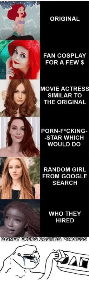 The last thing America needs is a black mermaid.One is The Little Mermaid and the other is Disenchanted. At least Ariel has her red hair and isn't totally black though.