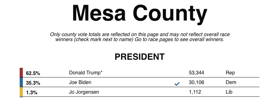 - The accurate final vote for Mesa County cannot be determined based on the review.