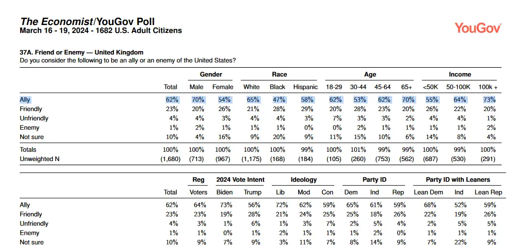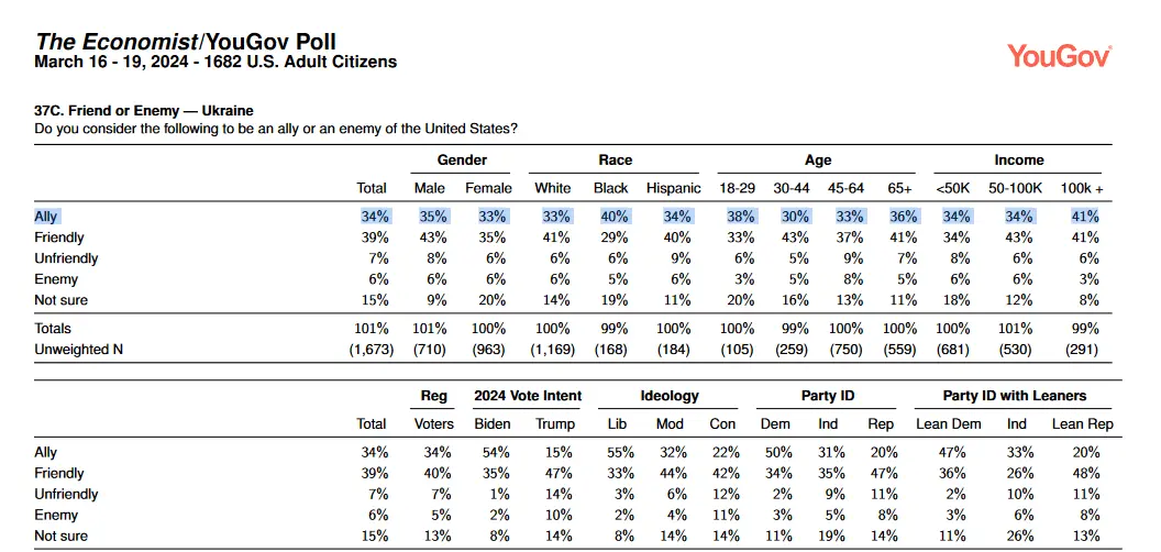 Americans now consider Ukraine to be the second most reliable military ally (after Great Britain) in the event of a world war.