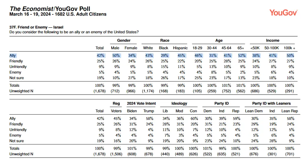 Most Americans KNOW, sight unseen, even w/o a link, that this is a complete, bullshit lie. Our government and population, are a lot closer to both Israel and Canada.