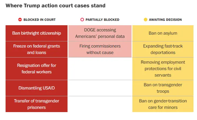 Oh...so those cases aren't happening? No judges have blocked Trump so far?WAPO is circling the drain. Jump in.