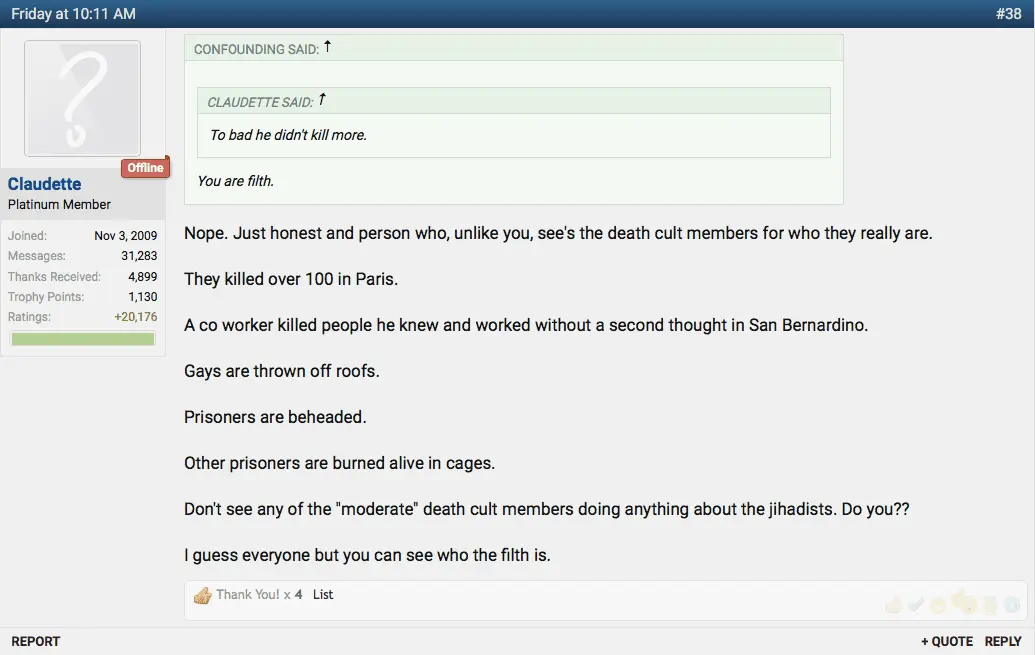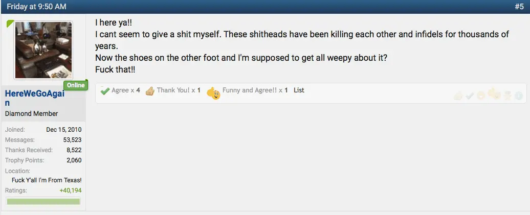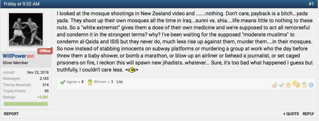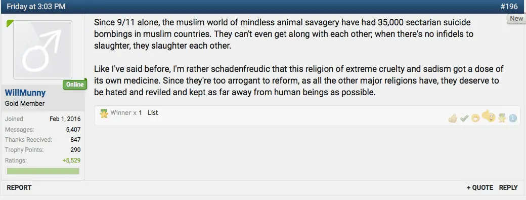That hatred and horror was justified and rationalized in almost exactly the way you fuckers rationalize killing 50 Muslims in a mosque