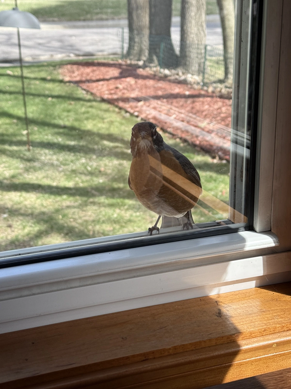 I'll start: There is a Robin that woke me up fluttering its wings outside my kitchen window. He kept landing on the ledge and looking in. I moved to my computer desk and now he is landing on that window and looking inside at me. I'm like, WTF? I can only guess he/she thinks that a hatchling is somewhere inside my house.