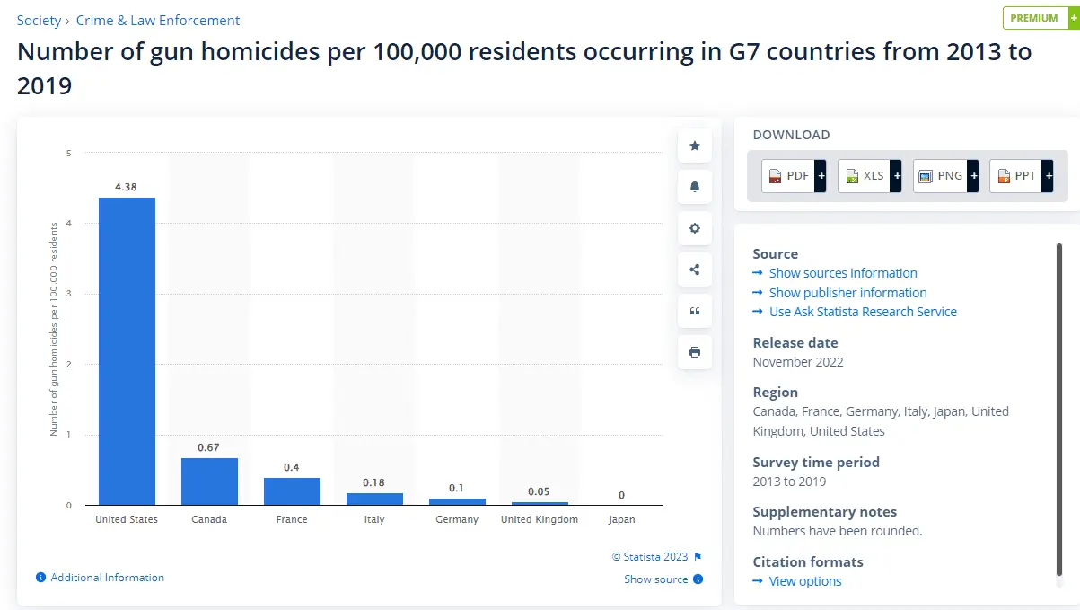 But still ridiculously higher than it is for the rest of the G-7 which has the good sense to limit who can own a gun.
