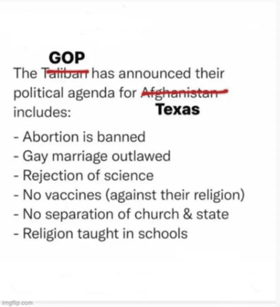 1. Republicans are not the Taliban, jerkoff.