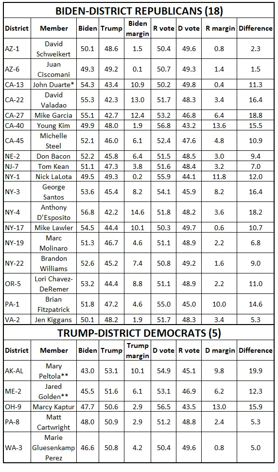 If I’m reading that chart right, every district that voted for Biden was done so with a higher Republican vote. So that must mean that some of those repubs voted for Biden. It also means they are majority Republican districts.