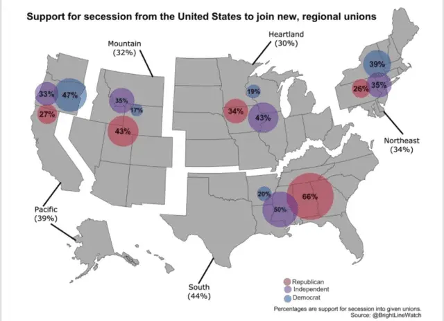 New Poll Reveals Percentages Of Americans Who Want To Secede By Region