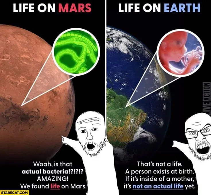 The pro-abortion and atheists would consider finding life on Mars something to protect but not a living person inside their mother's womb. Why would a bacteria be considered then life on Mars and a heart beat not be considered life on Earth?