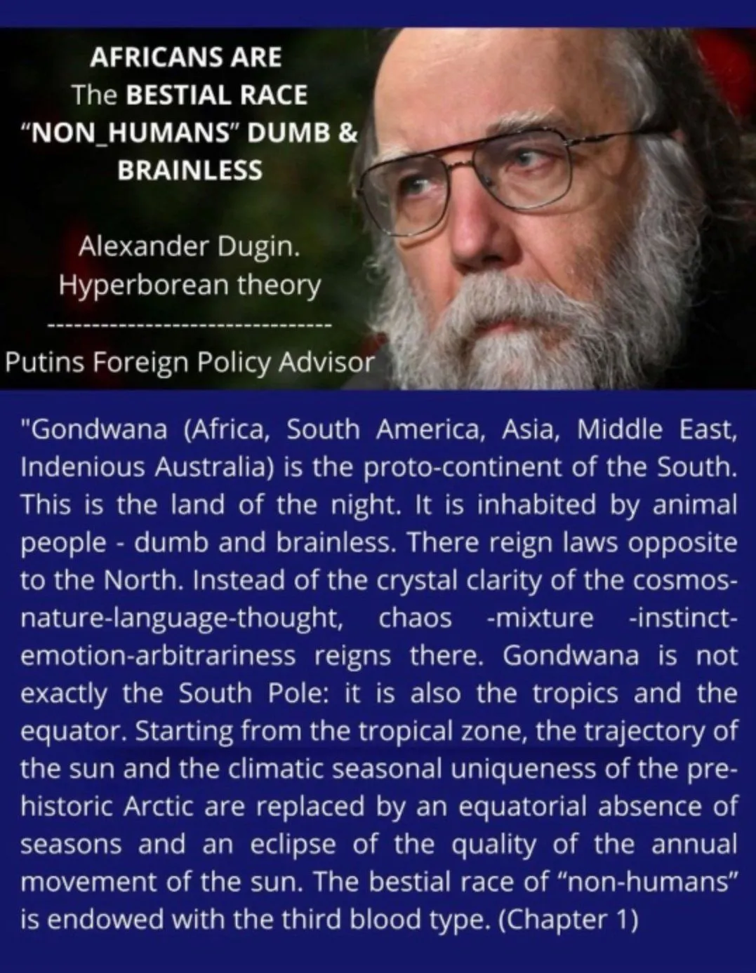 putin´s main ideologist (Dugin) about the Africans :