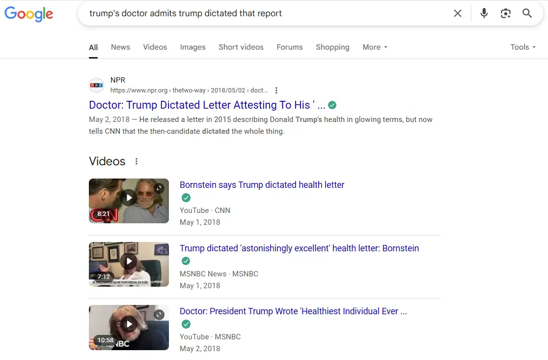 I see a link from NPR and three YouTube videos from CNN and MSNBC.That's funny. That doctor admitted trump dictated that whole letter.