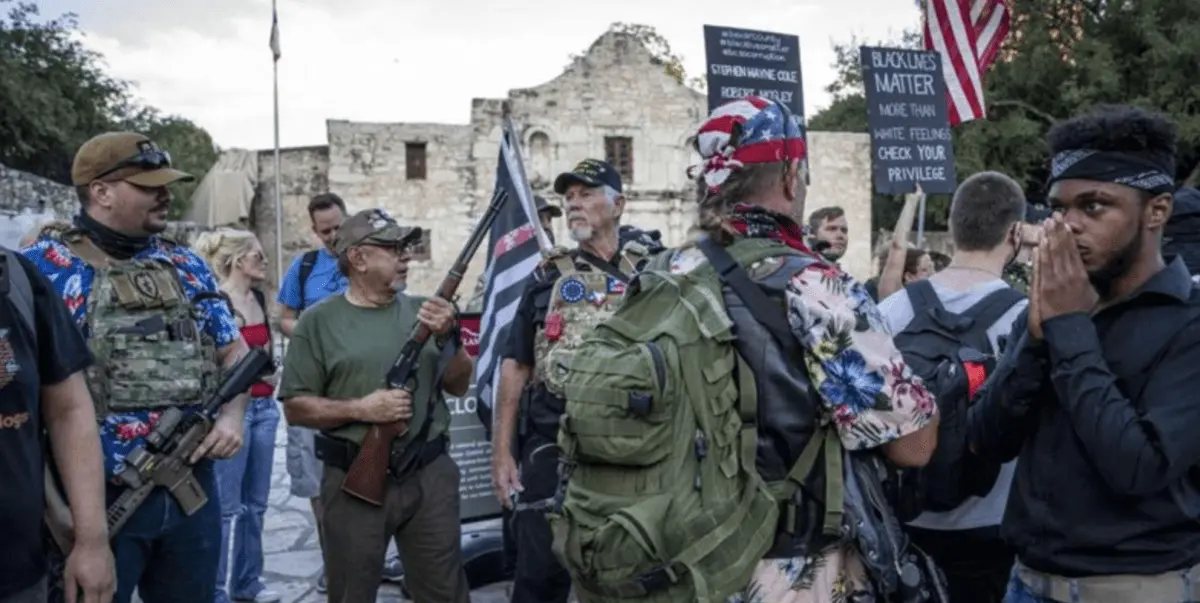 The "peaceful protesters" agreed to NOT approach that building or even go down that street. THESE LAW-ABIDING CIVILIANS knew better than to trust the "peaceful protesters" and decided to righteously guard this historic building from those "peaceful protester's" looting/vandalizing commie asses.