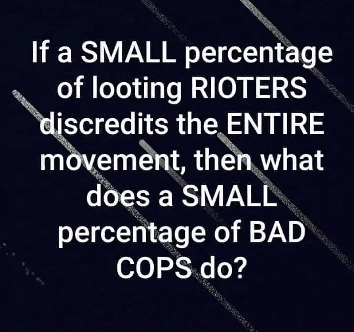 Yeah, it does.A small percentage of looting rioters does not discredit the entire racial injustice peaceful protests