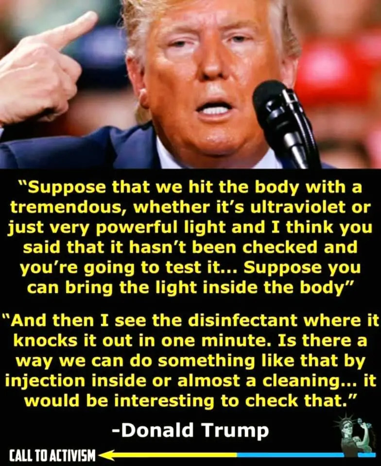 If you really think a man who has been successful in three different careers and won the Presidential election against 28 professional politicians in his one and only political race, if you think that that man told people to drink bleach, YOU ARE THE IDIOT, not him.Trump is all about stupid shit and his followers worship it as the gospel.Maybe trump should stop saying stupid shit.