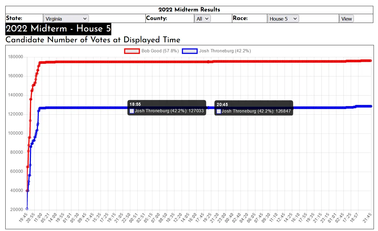 In one case it was ~200 votes increase for the Red and similar decrease for the Blue. (VA-5th)