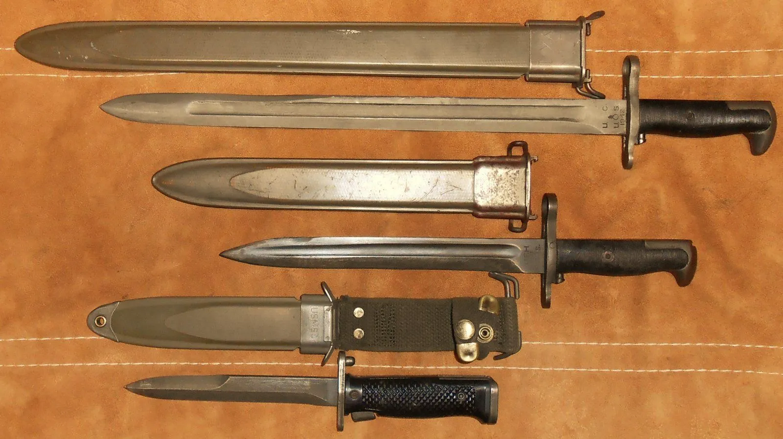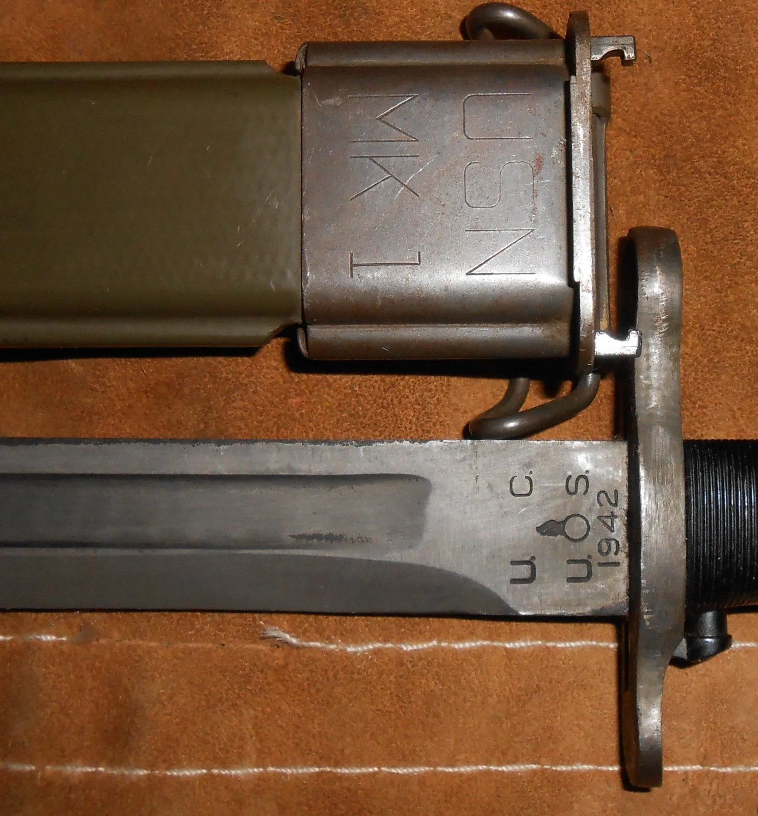 Bayonet, M1.....Known as a transitional bayonet made by Union Fork & Hoe. They were made from unused M1905 blade blanks, likely made around May of 1943....Most all are undated.
